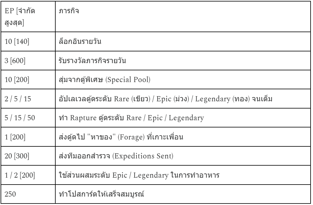 รายการภารกิจสำหรับสะสม Event Points (EP)