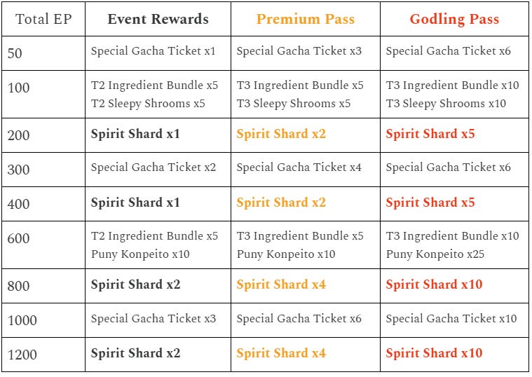 เมื่อสะสม EP ได้ตามที่กำหนด คุณจะปลดล็อกรางวัลเทศกาลที่ได้รับแรงบันดาลใจจากความมั่งคั่ง การเริ่มต้นใหม่ และโชคลาภสไตล์ดู้ด สำหรับผู้ที่มี Godling Pass หรือ Premium Pass จะได้รับรางวัลพิเศษเพิ่มเติม เพราะความรุ่งเรืองย่อมเลือกข้างผู้ที่เตรียมตัวมาพร้อม!